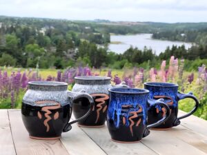 Venez visiter Trout River Pottery, à cinq minutes à peine de Cavendish. Le potier utilise de l’argile de grès afin de créer ses créations à motif de lupin uniques à l’ile, les motifs Blue Wave, Dark & Stormy, les patrons Some Beach, Seafoam et Ocean. Darren sera ravi de vous faire une démonstration et une visite des lieux. Vous pouvez aussi le trouver au Marché fermier de Charlottetown toute l’année durant les samedis de 9 h à 14 h et en saison les mercredis de 9 h à 14 h. Trouvez-moi sur Instagram et Facebook @ troutriverpottery
